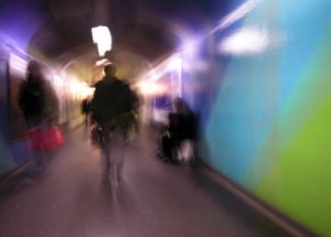 Blue Tunnel, 2007, Lightbrush auf Aluminium, 75 x 100 cm